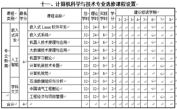 九、计算机科学与技术专业学分统计表