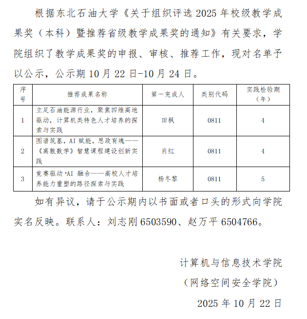 计算机学院关于推荐2025年教学成果奖申报的公示