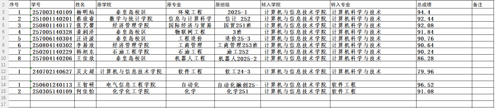 根据《betway中国西汉姆联转专业与转学实施办法(修订)》(东油校发〔2024〕99号)文件规定,经学生本人申请,学院转专业工作小组审核及面试通过,符合转专业要求学生名单公示如下: